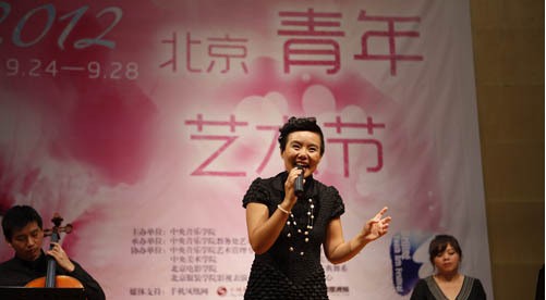 2012年9月25日下午14时,继前晚精彩的开幕式音乐会后,首届北京青年艺术节在中央音乐学院演奏厅迎来了首场名家唱谈会——龚琳娜(微博)唱谈“中国声乐的财富”。